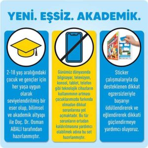 - Dikkati güçlendiren egzersizler çocuğun yaşına uygun olarak hazırlanmıştır.