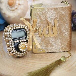 Hediyelik Mini Kuran & Lüks Taşlı Zikirmatik – Gold