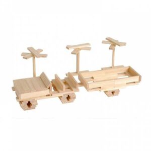 Kutu içerisinde örnek modeller içeren kitapçık bulunmaktadır. Ahşap bloklar boyasız ahşap malzemeden oluşmaktadır.