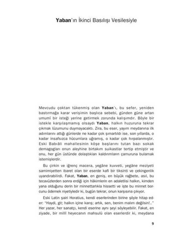 Yakup Kadri Karaosmanoğlu, Yaban ile sizleri mücadele yıllarının Anadolu köylerine davet ediyor. Yazarın usta kalemiyle yazıya döktüğü eser, toplumsal bakış açısıyla dönemin aydın-köylü çatışmasını ele alırken, Kurtuluş Savaşı’nın hangi koşullarda kazanıldığını gözler önüne seriyor. Türk edebiyatının en iyi eserleri arasında ilk sıralarda gösterilen bu romanı okumak için sepete ekleyin!